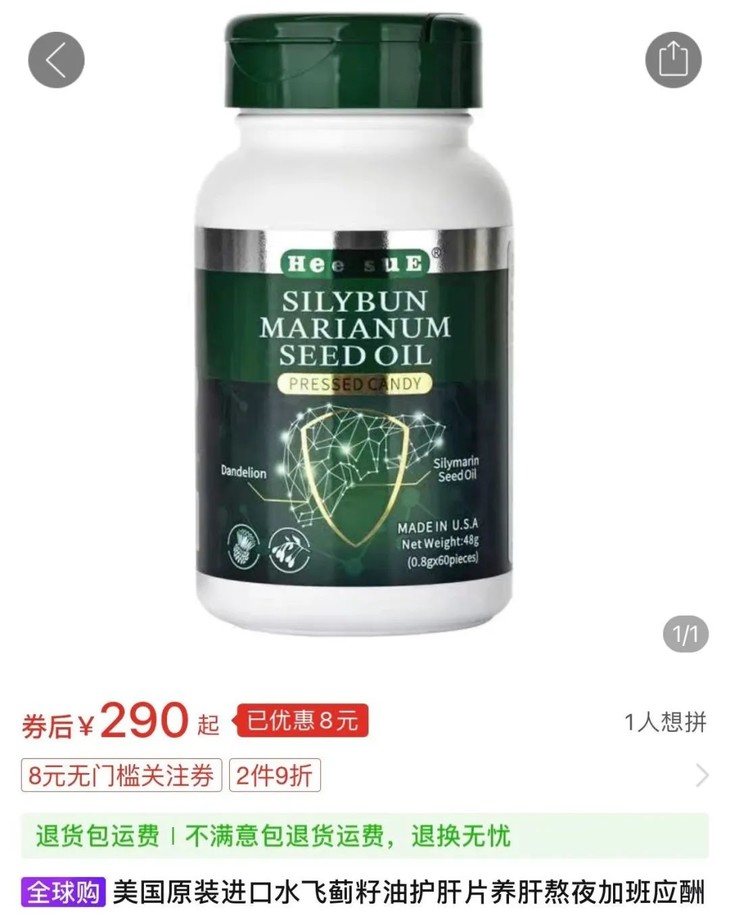 喜好喝酒、肉食主义、爱熬夜看球的美国人都很信赖它。在美国售价达到41美元,约合人民币也要290元/瓶,更别提进口后需要缴纳关税和运输费用。而我们和品牌方争取的特惠活动价,比美国当地零售价还低!注:此产品非药品,不可替代药物。如有病理性疾病,建议及时就医治疗。