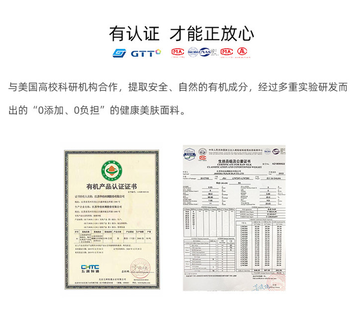 双面真丝,做工精细,更有有机产品认证证书,放心购买,无担忧~