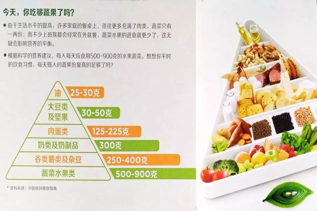 《我国居民膳食指南》里面也讲到,推荐大家每天摄入蔬菜300-500克(6两~1斤),水果200-400克(4~8两),提倡最好餐餐有蔬菜、天天有水果。
