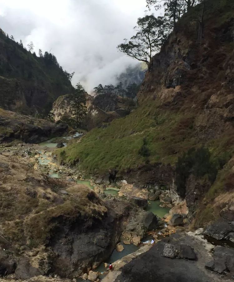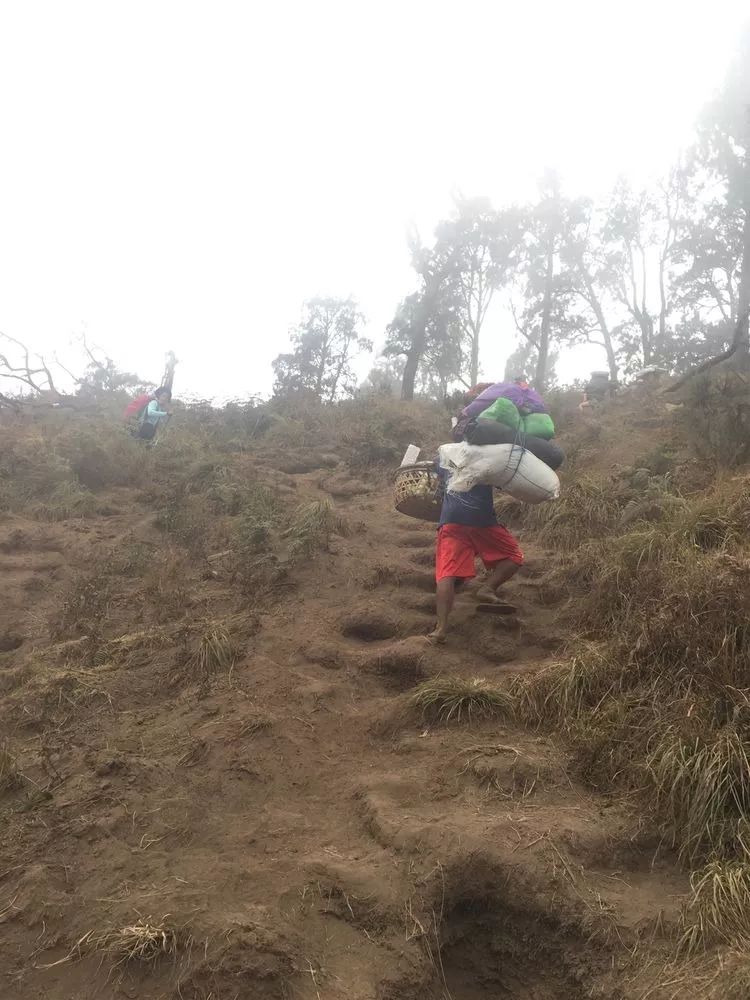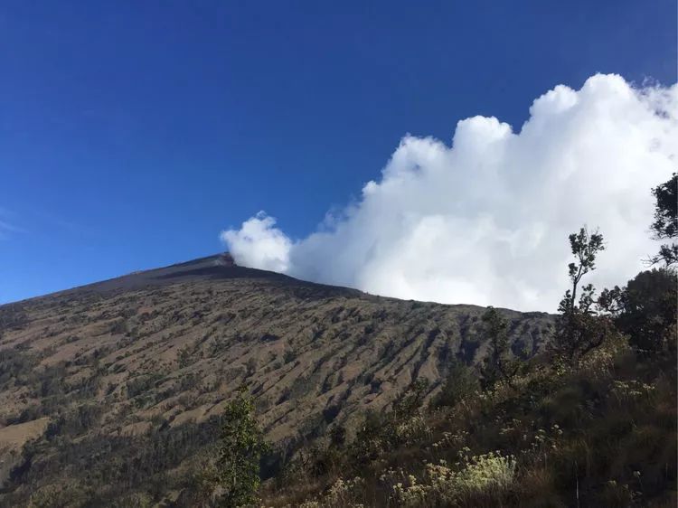 走在山脊上风大得快站不稳。上山时向导说大家靠左跟着前面走,反正看不见路,只知道爬啊爬,下山才发现一边是悬崖掉下去就是火山口了!