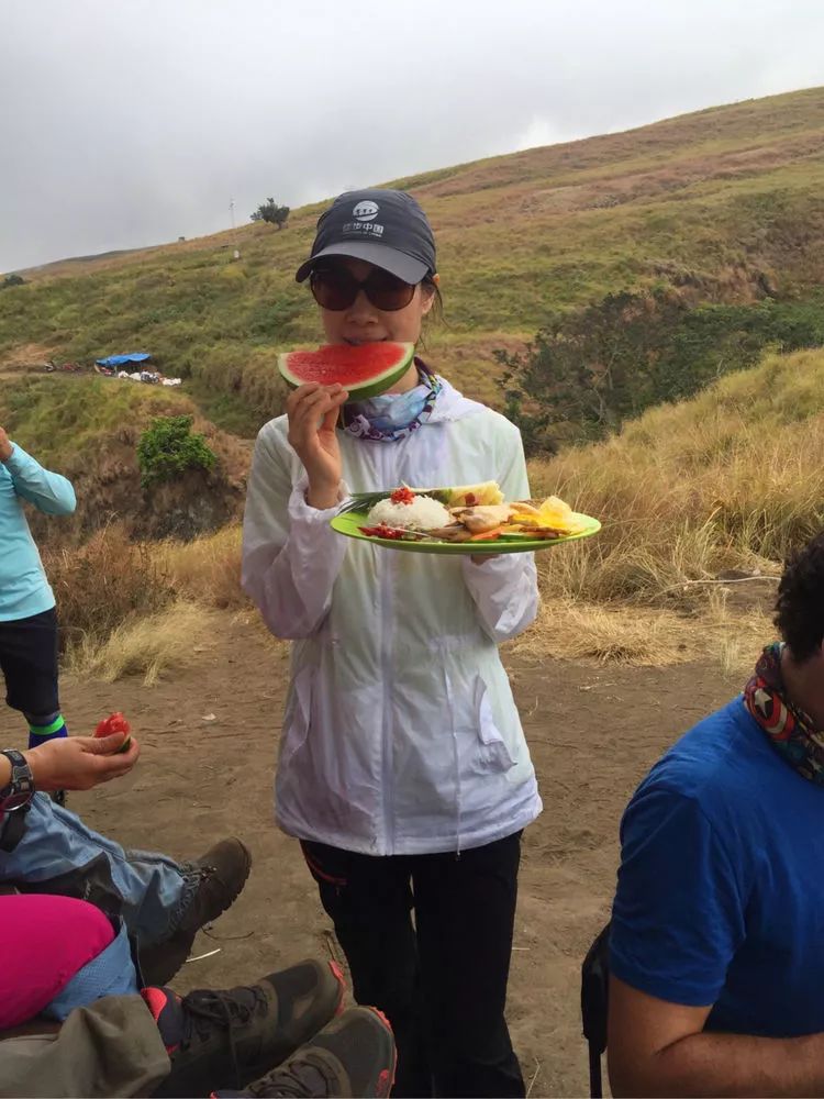 今天任务就是一路狂奔下山,早上大家还是不辞辛劳的爬到山顶看了日出再看一眼美丽的林加尼火山就准备离开了!