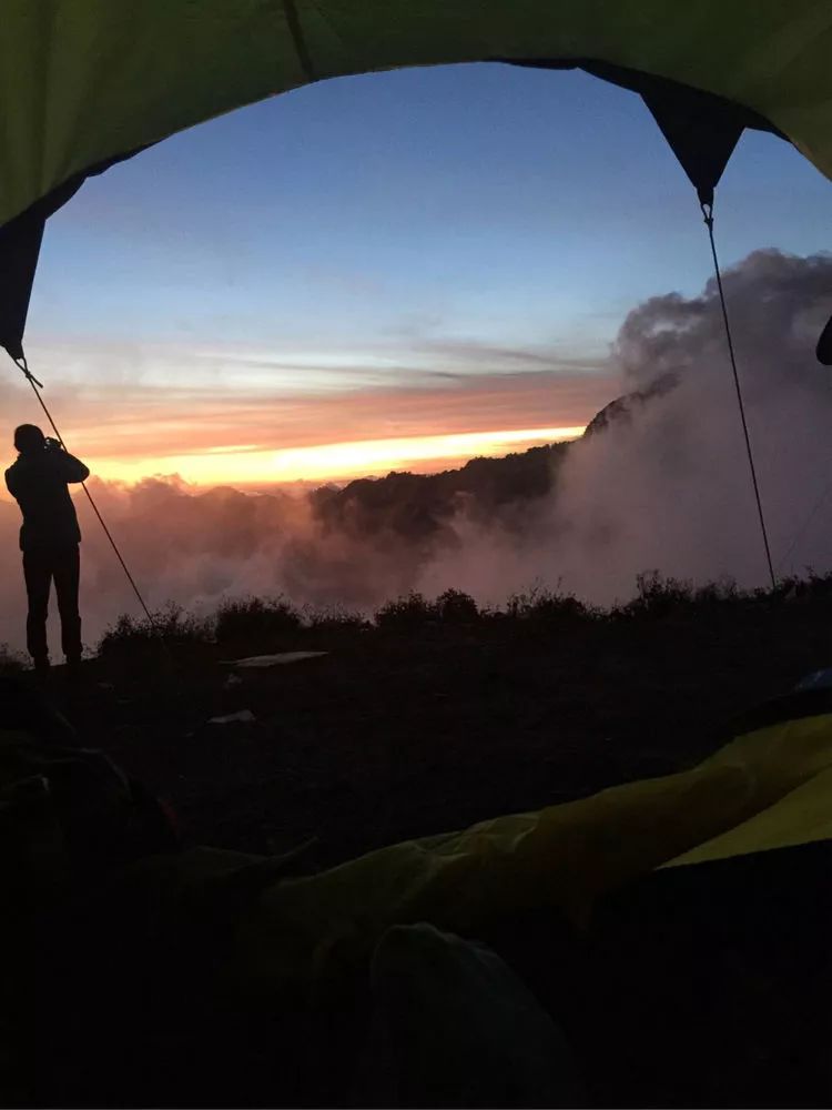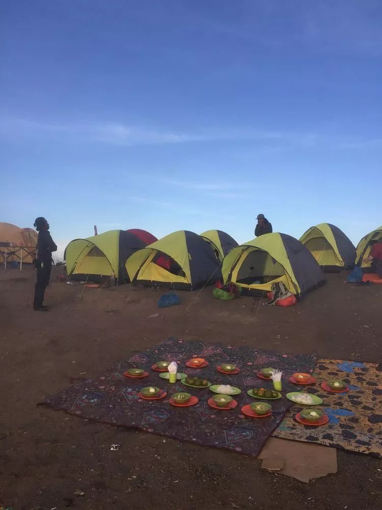 休息一下爬到山顶看到一点点日落,第一晚还矫情睡帐篷不舒服,昨晚累得8点就睡到天亮,今天不知道能适应吗