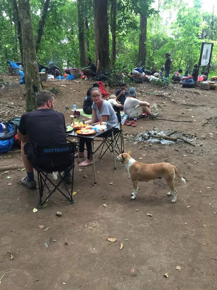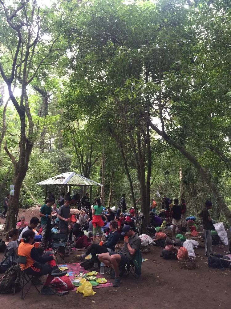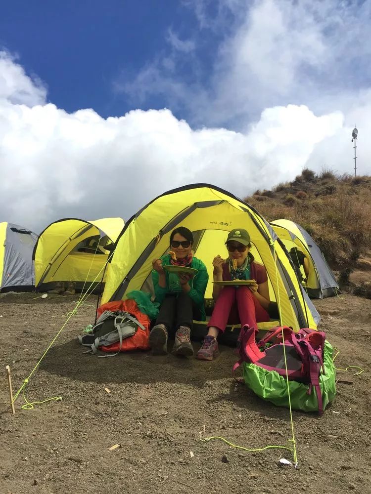 上山3个半小时,下山2个小时,回到营地,,吃完早餐休息一下准备下山,到湖边扎营!