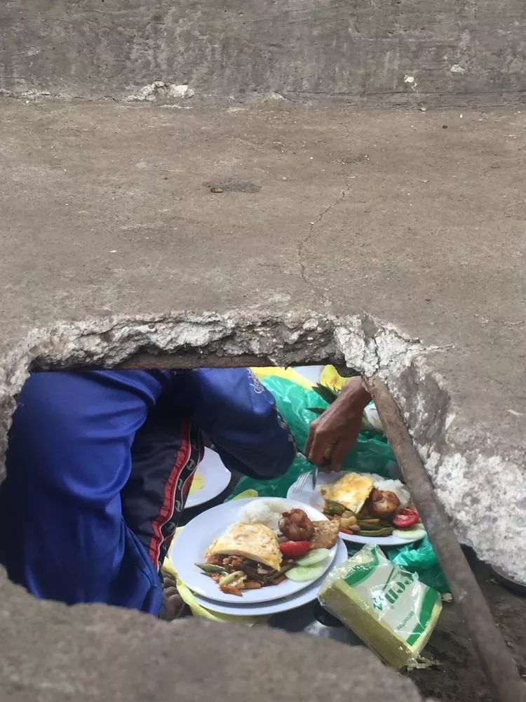 哈哈,透过这个小洞可以看到午餐都是纯手工制作的!这样的地方有吃就不错了,😀