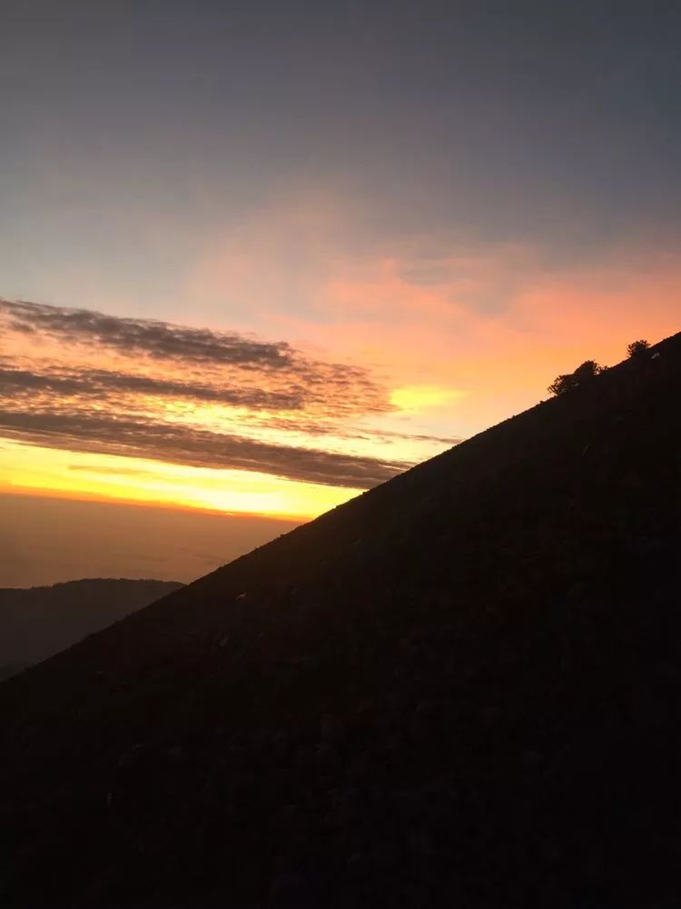 领队昨晚详细讲解了路线,我们第一晚爬到山脚扎营,600米爬到2639,第二天凌晨2点出发冲顶3726,三个多小时赶上日出又还没起雾,才可以看到火山口!第二晚露营湖边还可以泡火山温泉,第三晚到2637米扎营然后第四天很辛苦,一路下山,到600米回到海边酒店!
