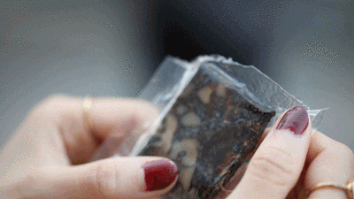砸碎后,放入杯中,加沸水适量,随即盖上杯盖,放置1~2分钟,打开后胶香味浓。