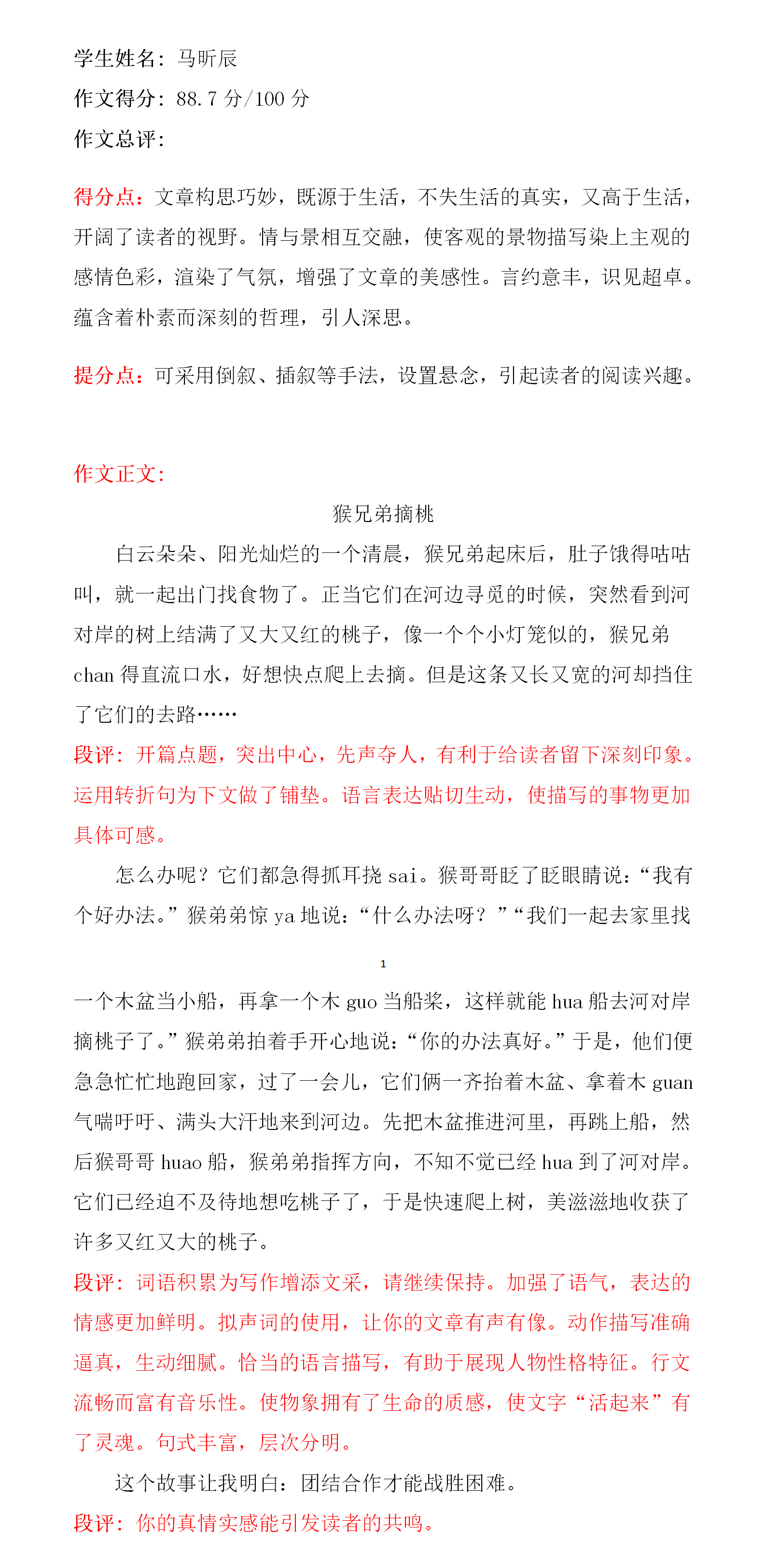 武昱璇小朋友乖巧、懂事、思维活跃,见解总比别人多,尤其是语言表达能力特别强!在班里语文成绩总是名列前茅!这次在创新作文大赛中取得优秀的成绩,这与她平时的努力是不分开的,我们祝愿武昱璇小朋友再接再厉!创作出更优秀的作品!