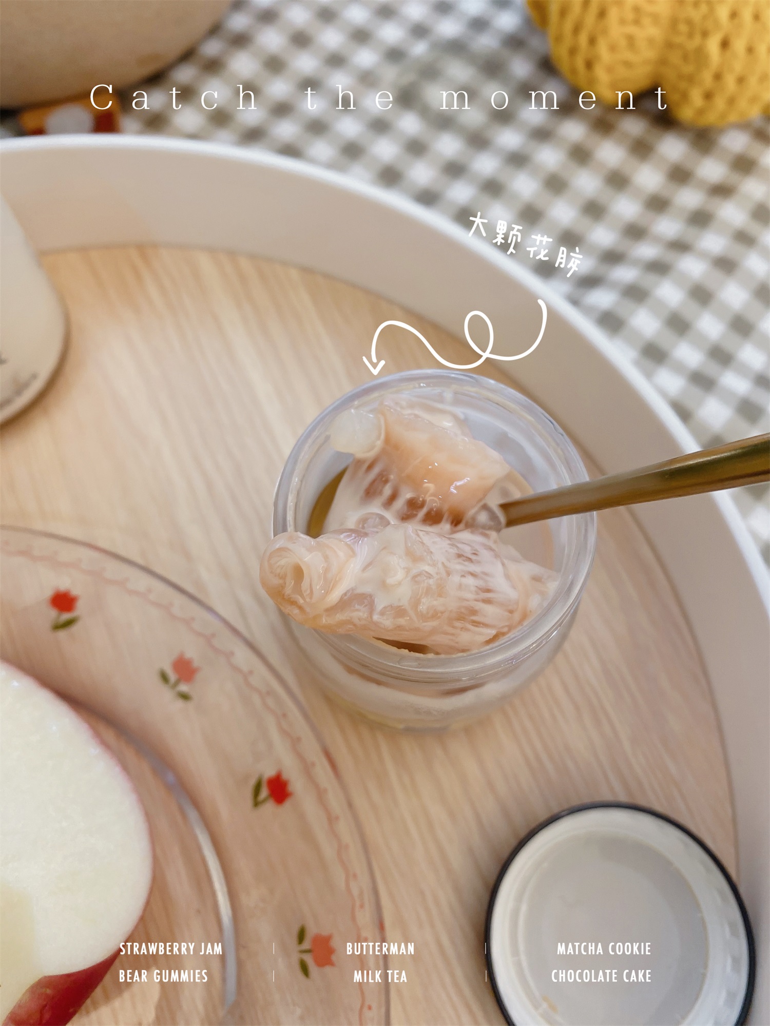 孕期开始我一直有吃花胶的习惯,现在还都蛮方便的,有鲜炖花胶,鲜炖即发,保证了花胶的新鲜。花胶有补充胶原蛋白、补气补血的作用。而且它的脂肪非常低,也不用担心会长胖。我吃的是官栈鲜炖花胶,之前孕期朋友送的、吃的蛮好也就一直没换过