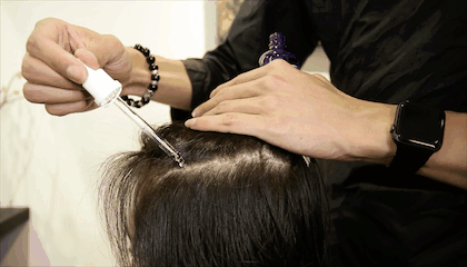 第二步就是用密发精华液,除了巩固发丝以外还可以防脱、增加毛囊的数量,这样就能增加头发的发量。养花还是要有片好土壤,就是这个道理。
