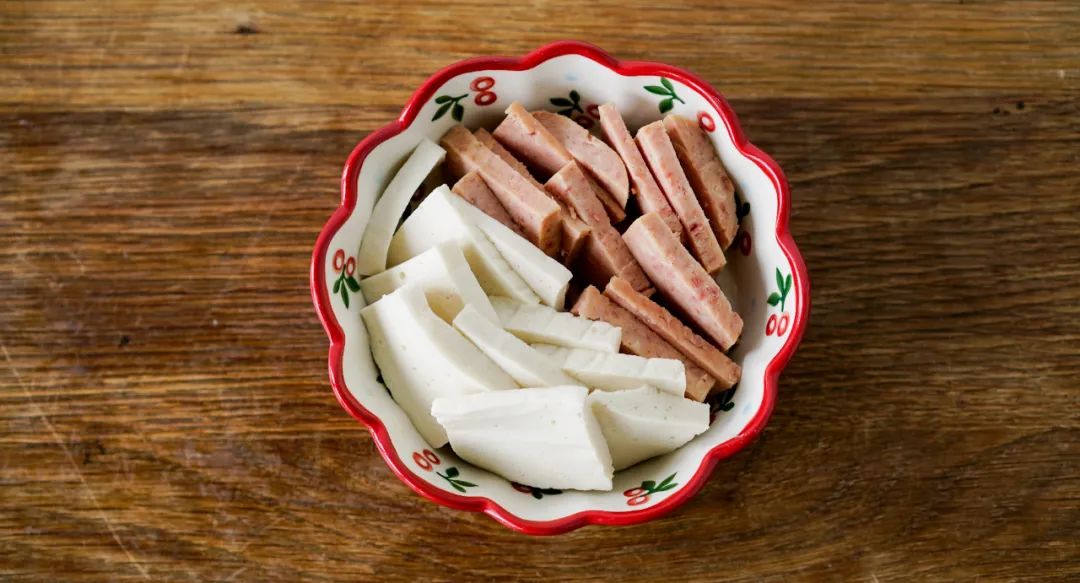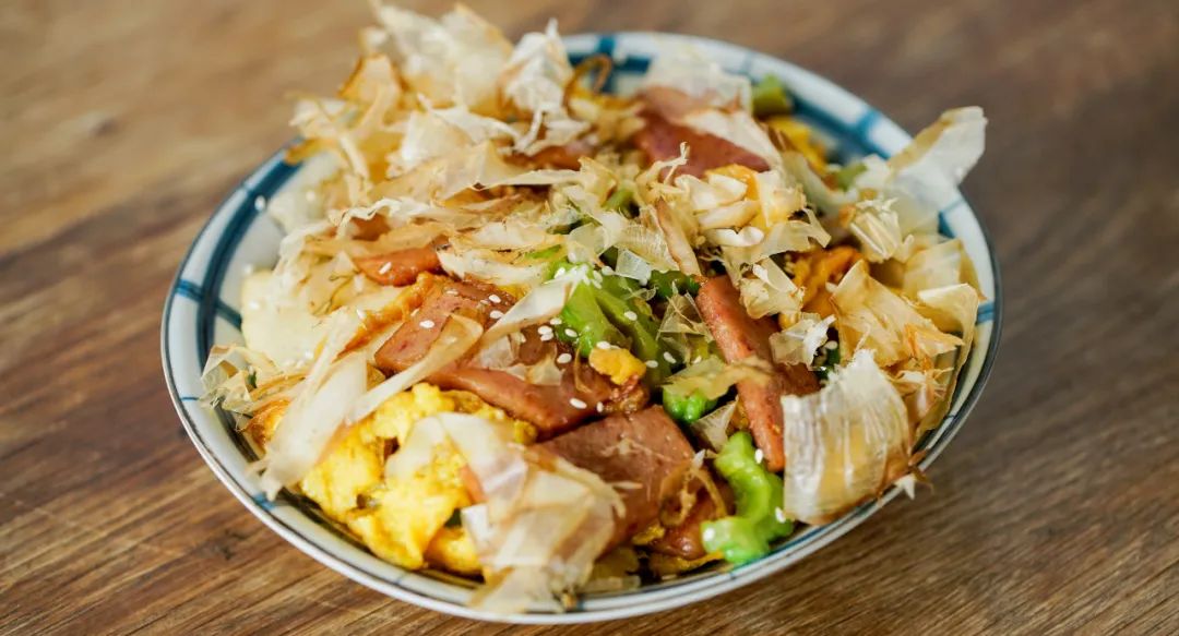 午餐肉 半盒 / 木鱼花 适量 / 白芝麻 适量