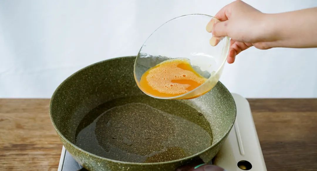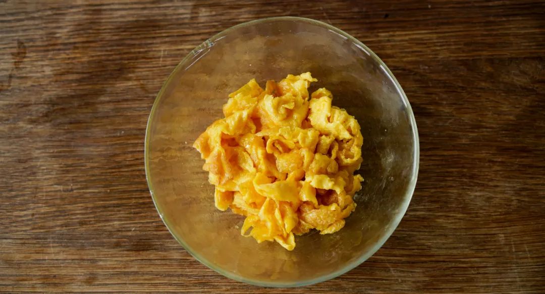 2.入锅炒蛋:锅中倒油,比平时炒菜多一些,油热后倒入鸡蛋。