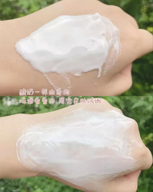 撕开包装后,挤出的膏体是酸奶质地的白色膏体,看着厚重但是很好推开。