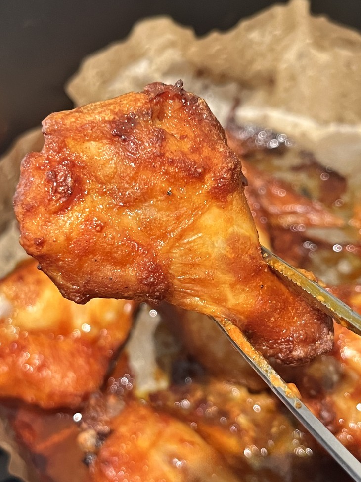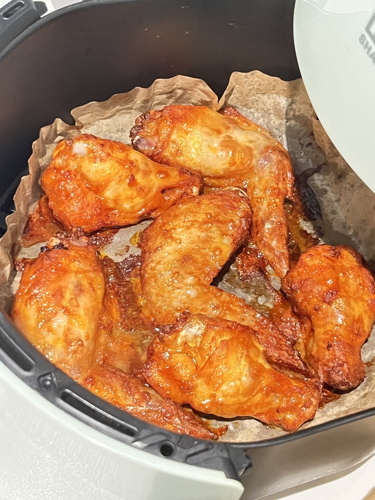 汁汁烤翅拆袋倒入炸锅,200度18分钟左右,中途翻一次面,搞定👌!!