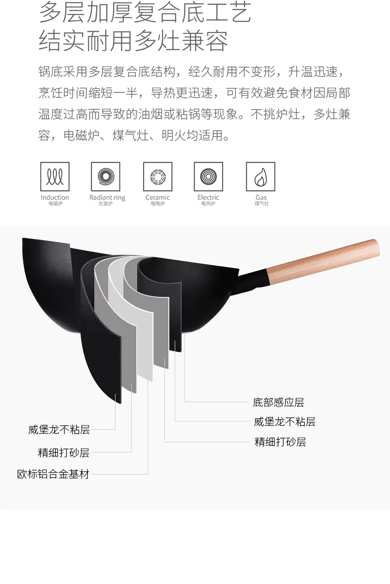 悦味元木创意锅具四件套 多功能不粘平底炒锅厨房套装