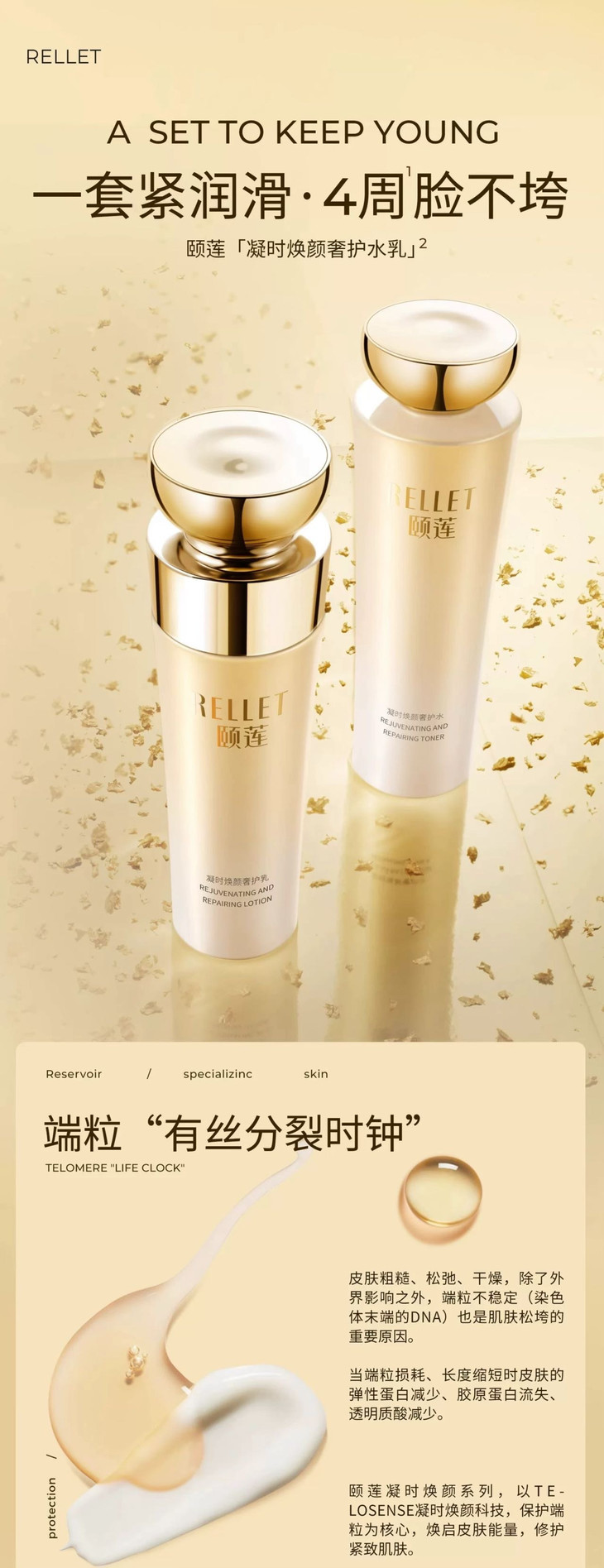 端粒是什么?简单来说,它是染色体末端的“保护帽”,和肌肤衰老息息相关。随着端粒损耗,皮肤弹性蛋白减少、胶原蛋白流失,这就是肌肤松垮的重要原因之一。而颐莲系列通过Telosense科技保护端粒,减缓衰老进程,让肌肤弹力满满。