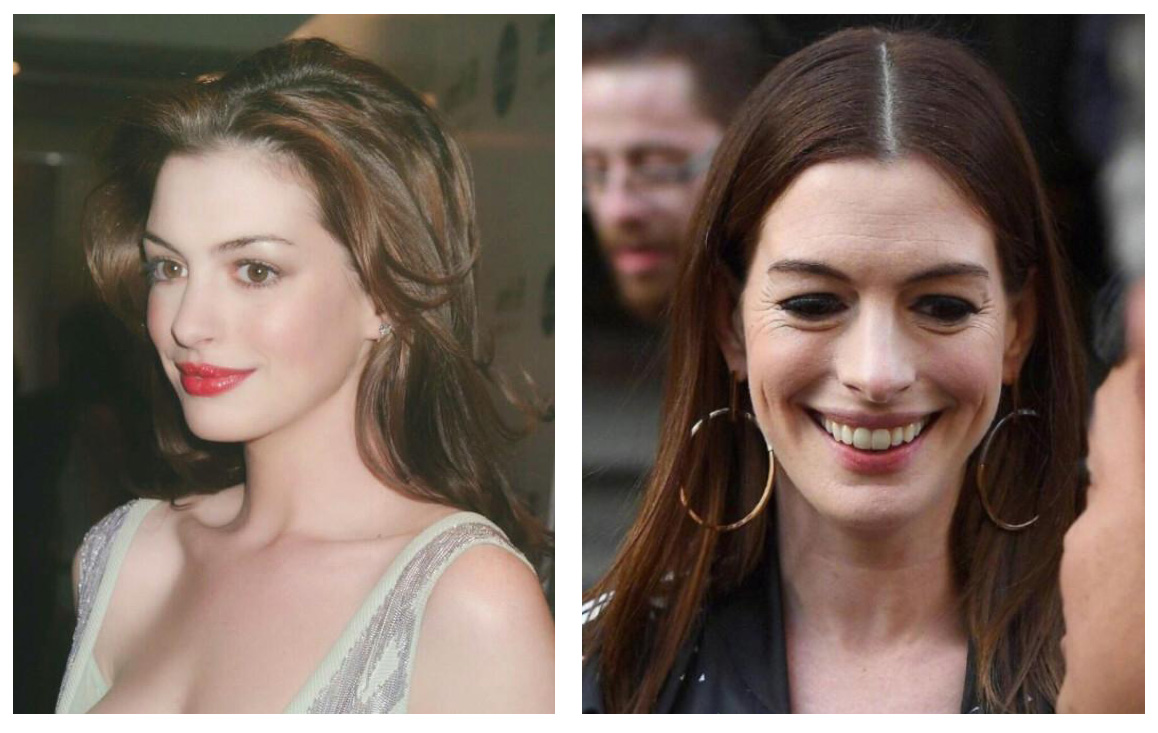 很多人心目中的女神安妮海瑟薇,有了眼纹,形象也要一落千丈,少女到大妈就是几条眼纹的差距。