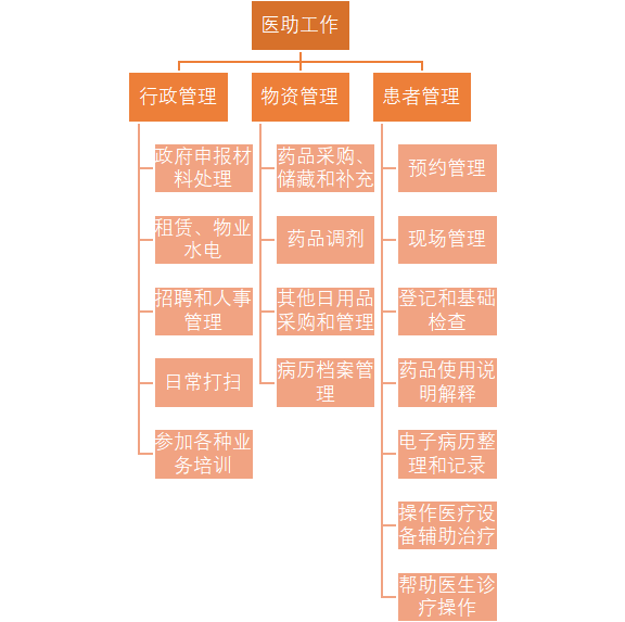 而中国诊所聘请的医生助手人员几乎是护士出生。也就是说,没有医学相关学历的医生助手,其工作专业能力居然远远超过了中国这些具有医疗专业背景的护士!这和中国整体的医疗人员培养模式有关,中国是专科化培训,而且不重视管理技能和信息化的培训,非临床经验就全靠自己在社会上慢慢摸索。