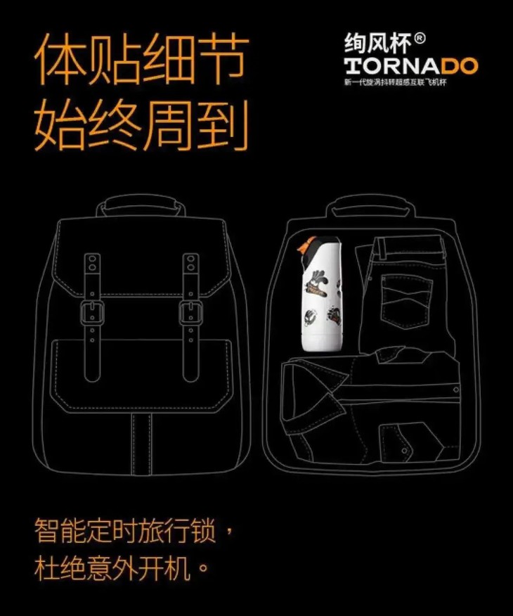 整体设计又小又轻,好看不尴尬。方便使用,更方便收纳。智能控温技术开启自动加温,38-42摄氏度还原真实的人体温感。磁吸充电,优雅便捷。绚风杯在怪兽集合App内进行旅行锁操作,携带外出避免误触,IP56防水等级,全身可水洗,超大电池容量最长续航1.5小时。