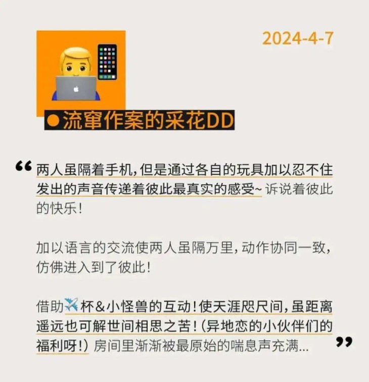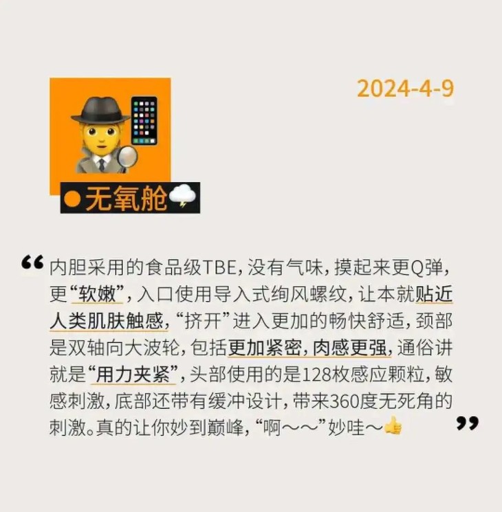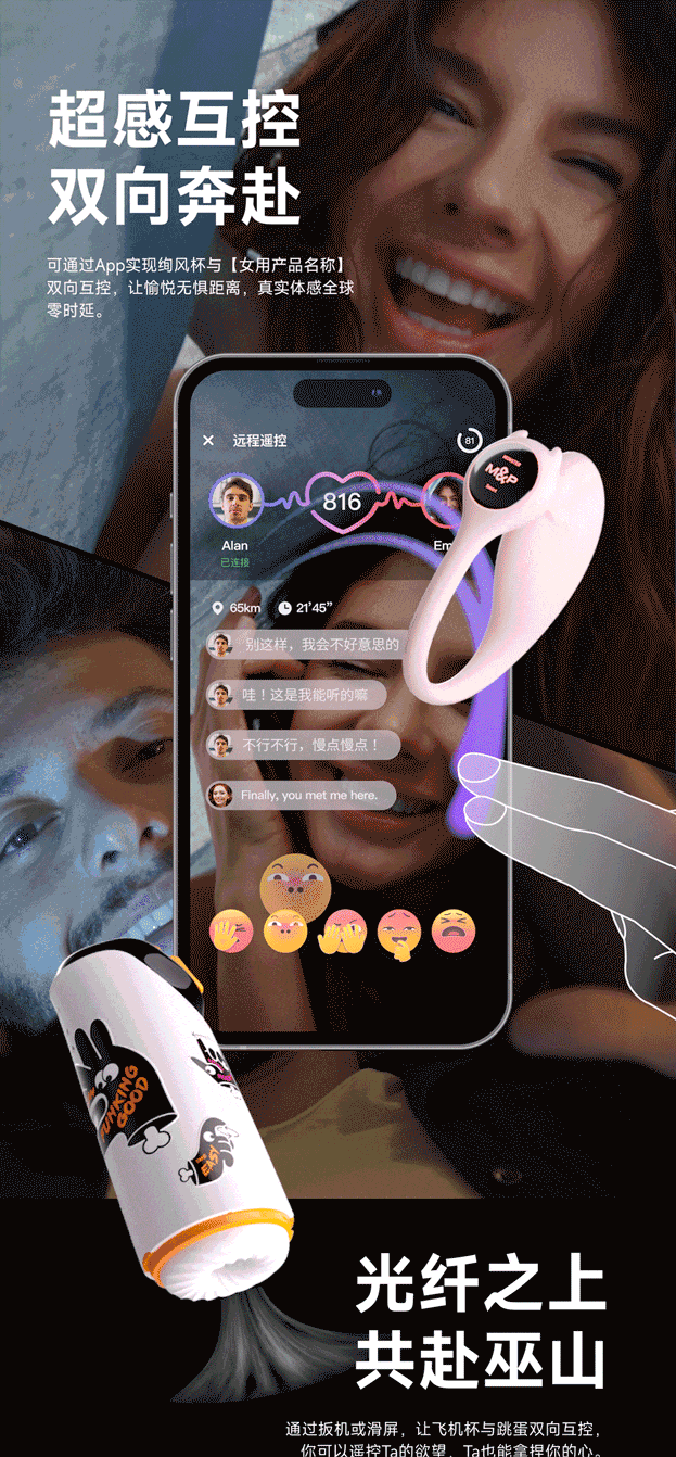 但是一次完美的体验,应该是双方一起抵达的。所以我们新增了双向互控功能,让男女双方能够在使用时,充满有来有回的趣味互动。忽重忽轻的小挑逗,和突然变重的偷袭是完美体验里不可或缺的部分。在双向互控时,男女双方可以通过滑屏,同时控制飞机杯和跳蛋。如果两人同时滑屏会怎么样呢?这还用我明说吗兄弟?狭路相逢勇者胜,当然是以滑屏力度更强的一方为准。小时候你在电视里看大侠隔空比武,现在你用绚风杯和女孩“隔空比武”,这怎么不算是圆了小时候的武侠梦呢?不过人的精力始终有限,前奏就会耗费大半,即将攀登高峰的时候就会渴望有一种省力的方式。别忘了,我们还有扳机互控,男方在绚风杯上扣下扳机,即可遥控双方的产品,一起向最高峰冲刺。本次升级可实现全球0延迟,控制更稳定,在双向奔赴时尽享丝滑操控。早有率先体验过的粉丝,将它隐晦而又直白评价为:即使天涯咫尺间,虽距离遥远也可解世间相思之苦。△来自怪兽圈用户@流窜作案的采花DD 真实测评