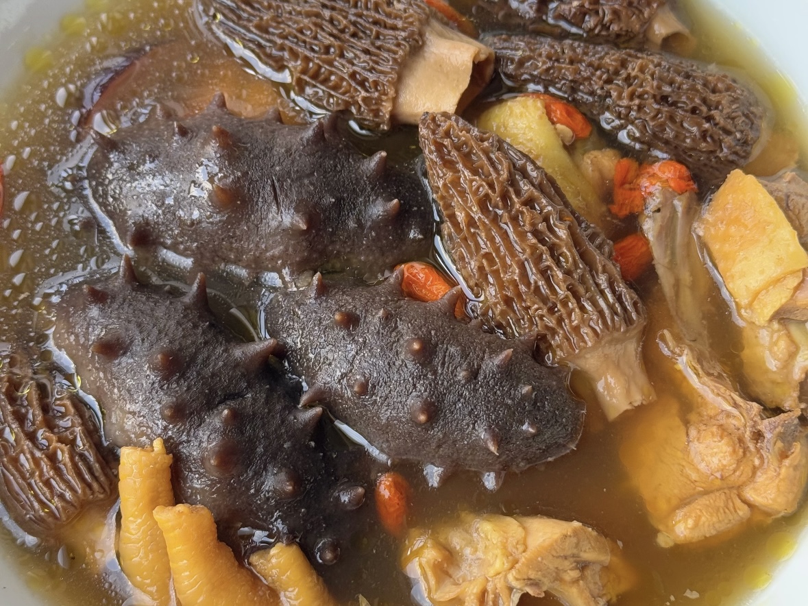 1、海参提前泡发处理好,羊肚菌提前泡发10分钟;