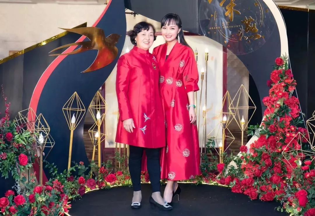 中国保险皇后 叶云燕与母亲身着中国绣花衣