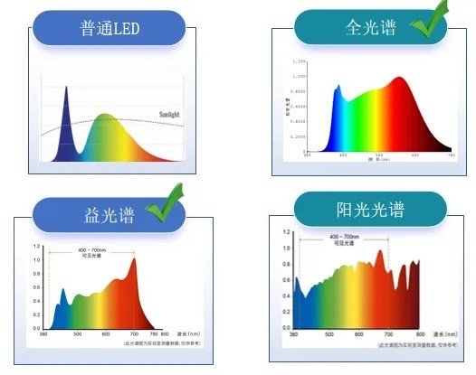 光谱是重要的改造方向,益光谱是向着阳光光谱的方向改进,相比于普通LED灯光谱,弱化蓝光,补充红光,中科院有研究表明,在加入深红光的环境下生活,能让幼猴的眼轴少涨20%。