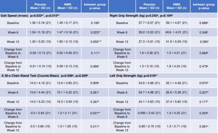 NMN之前相比试验者们的步速、握力显著提升,从安