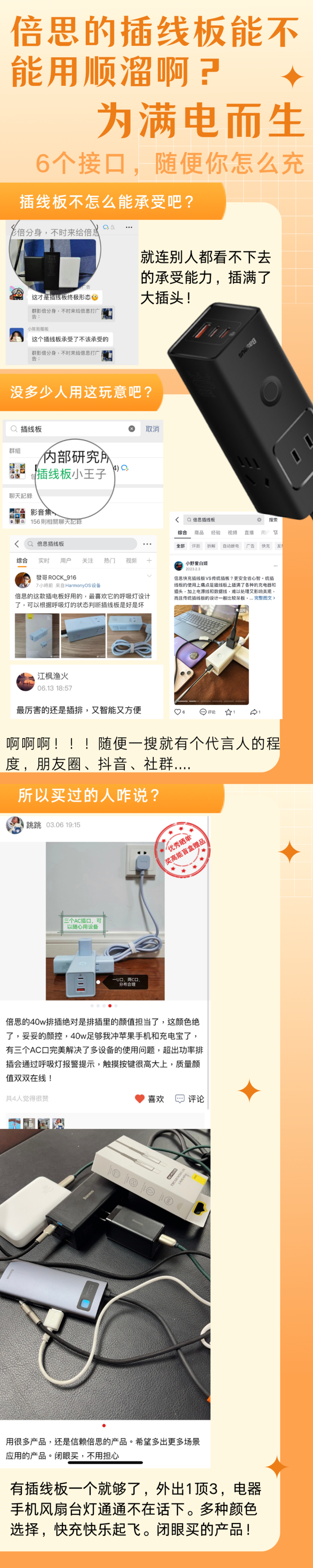 【首页还有插线板专题使用声音,其他使用过倍思插线板的人的使用体验可以帮助你更好的做出判断哦】