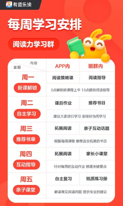 同时提供阅读拓展作业,伴学点评,亲子课堂等服务,让学习更有效。
