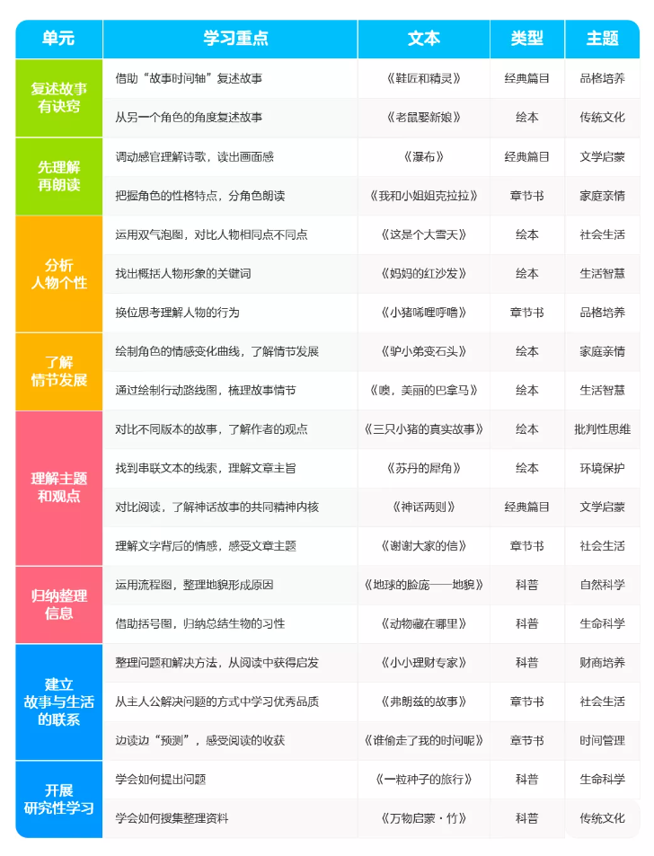 L1-L2 里会广泛接触,除绘本外文本类型有科普型文本和诗歌等,学科知识上涉及到文学、科学、经济、情商、艺术等等,建立孩子阅读兴趣,让孩子多进行开口表达,做好幼升小准备