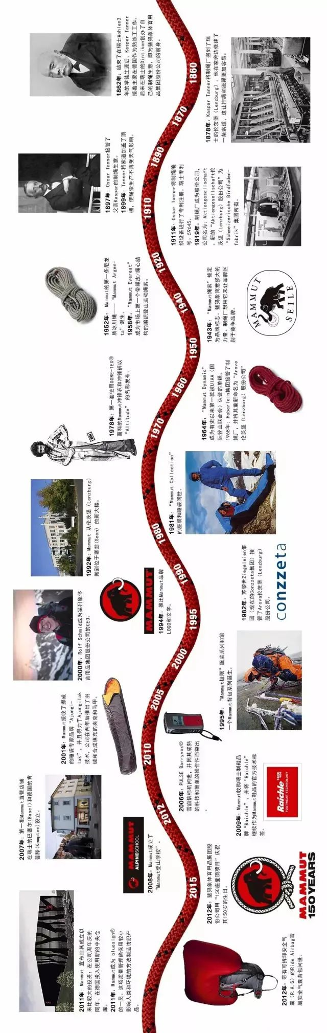 作为拥有悠久历史的户外品牌之一,跟随MAMMUT猛犸象回顾历史里程碑,从1862年的一条登山绳索开始,一起感受饱含激情的MAMMUT猛犸象产品带给你的信任、支持和激励。