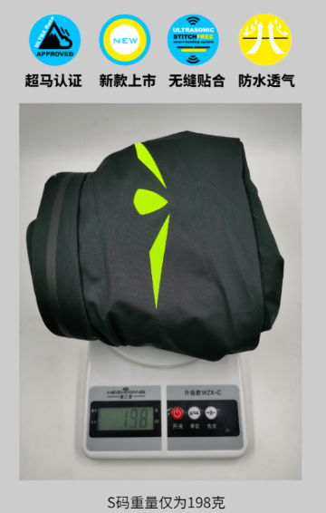 防水20000+、透气30000+的轻量级功能性面料,全部接缝位置均单独额外封装压胶条。