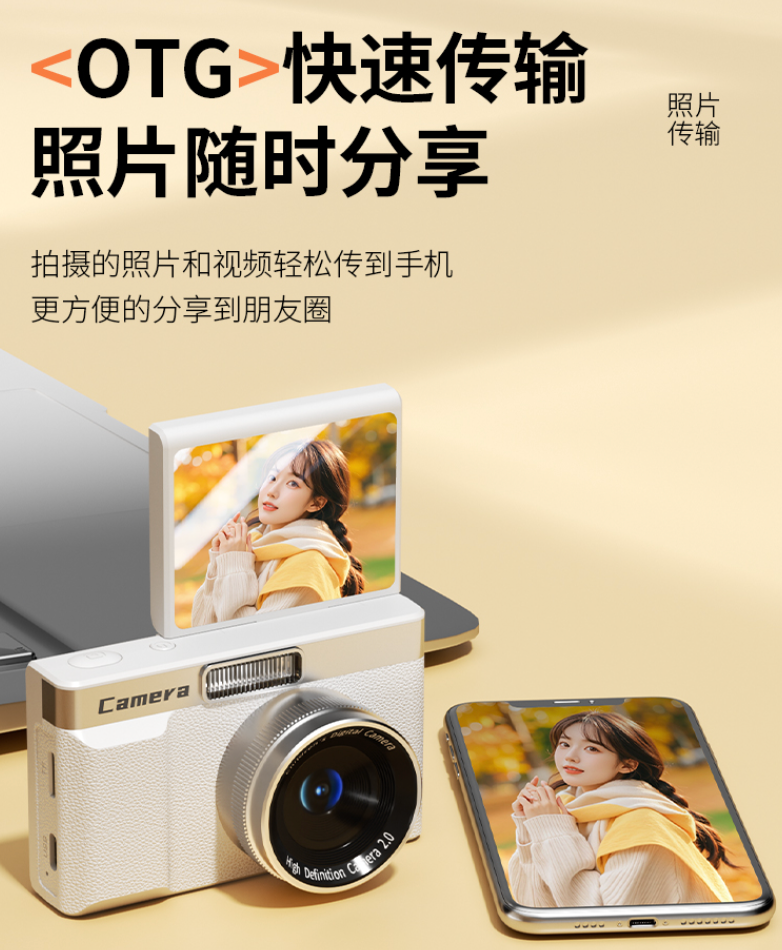 2.4英寸高清翻转屏,为自拍星人量身打造,翻转流畅没有复杂操作,开机就能拍。