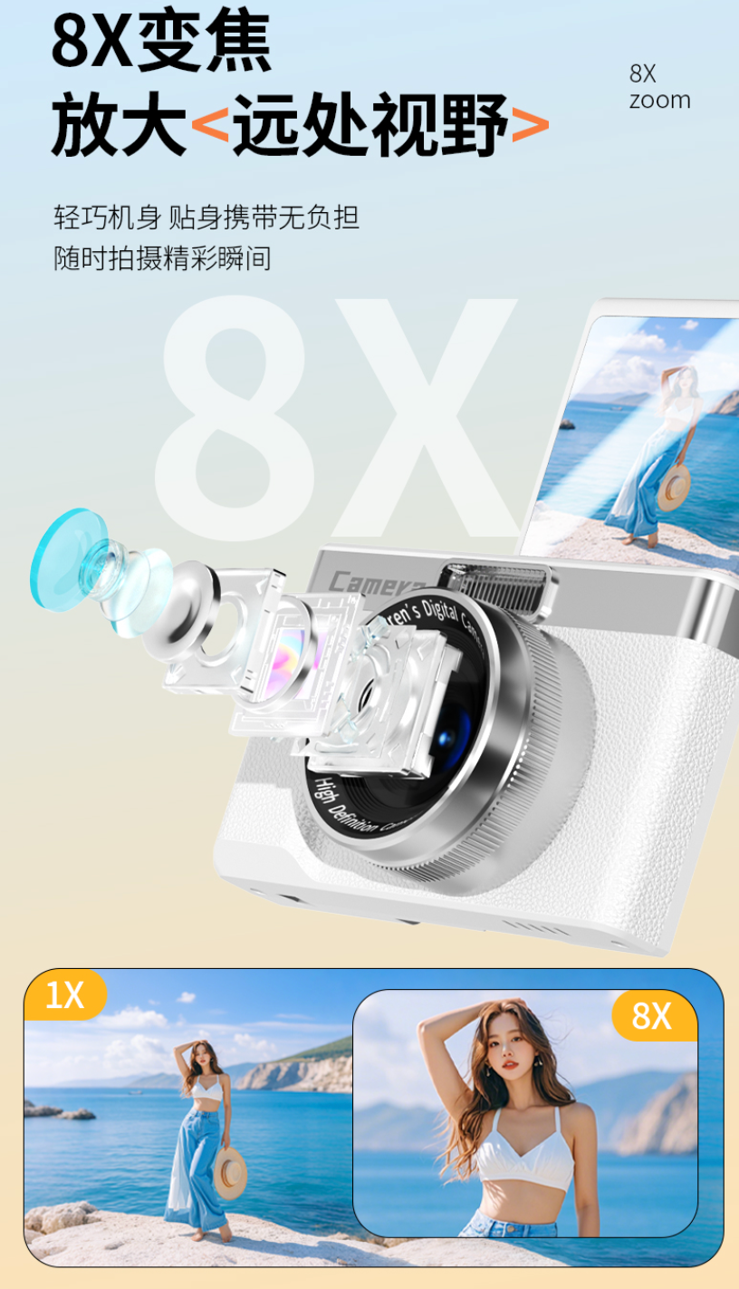 8倍电子变焦+自动对焦,还有防手抖功能,不管是拍近处的细节还是远处的美景,都轻轻松松出片。