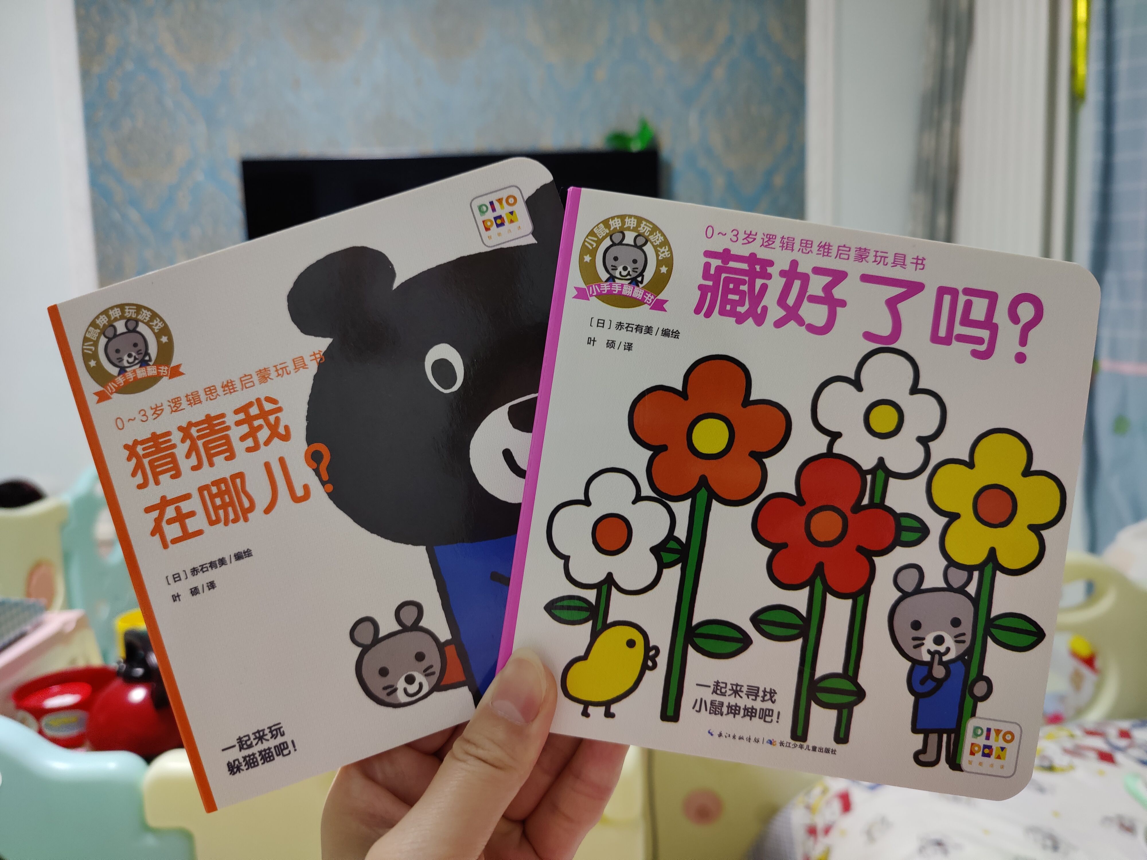 甜豆今天自选了小鼠坤坤两本关于藏猫猫的机关书😊 捉迷藏躲猫猫是小宝宝们最喜欢的游戏啦。