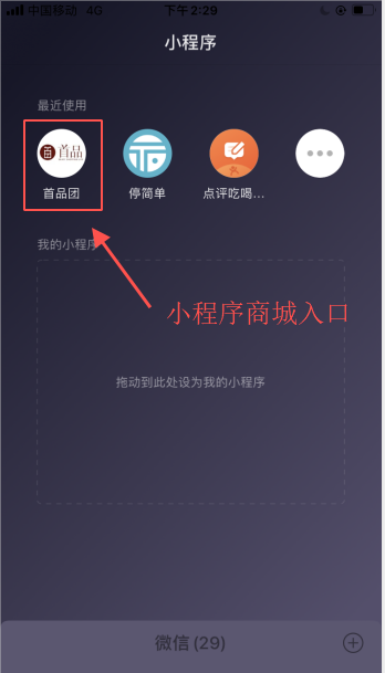 首品团商城可以从首品团微信公众号进入,同时也可以通过微信小程序搜索“首品团”直接进入。