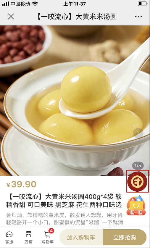 2、选择你想要单独分享的产品,进入商品页,你会看到右下角有个“团”字图标