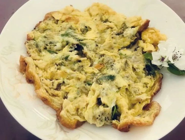 把梨花用盐水泡十分钟左右,再洗干净,然后打两个鸡蛋,加入梨花一起打散拌匀,加适量盐、黑胡椒等调味,下锅煎成蛋饼即可。