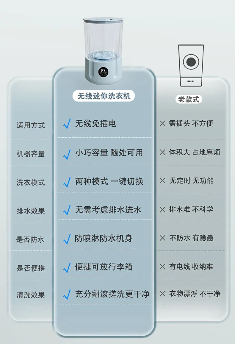 离开了电源线的束缚,比传统洗衣机还要灵活得多,阳台、洗衣机堆、浴室洗手台都能放。