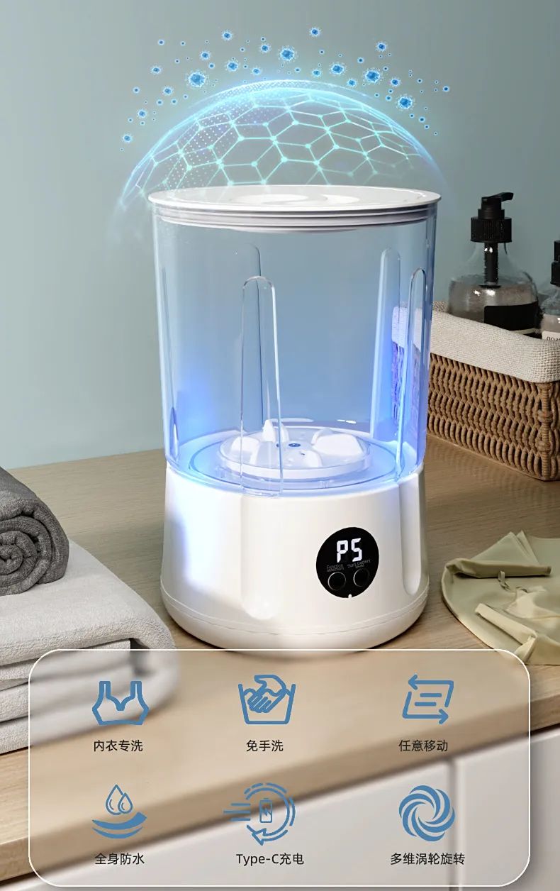 有了它,高速涡轮模拟手洗,蓝光灭活内衣裤袜上的顽固细菌,比手洗还要干净。