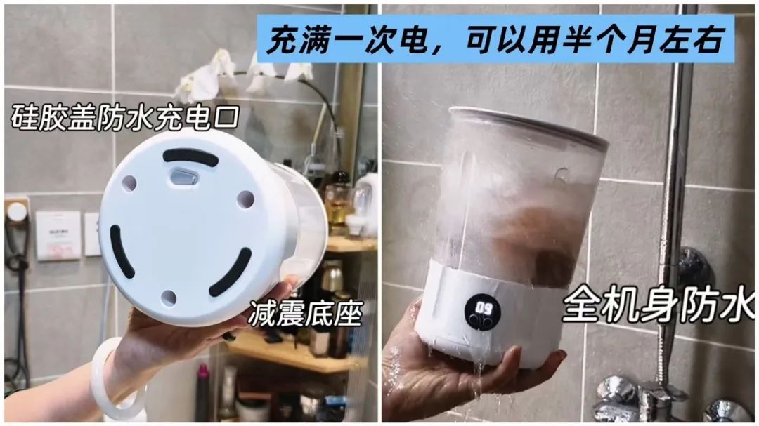 充一次电就能洗20次,续航力很强,带去出差直接承包所有的脏内衣裤袜~