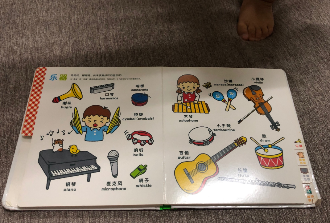 《幼儿认知小百科 》 今天点读的是乐器这一页,点读笔的音效真的好,乐器的声音都有。