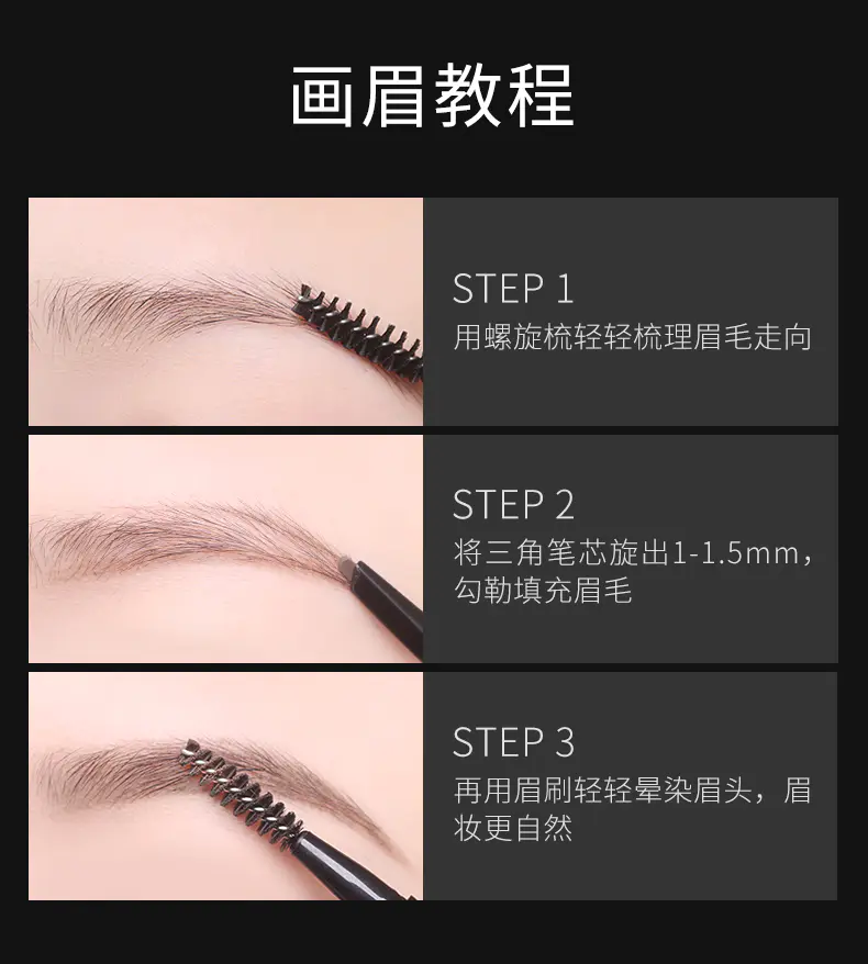 ②笔芯旋出1-1.5mm,充分勾勒眉毛