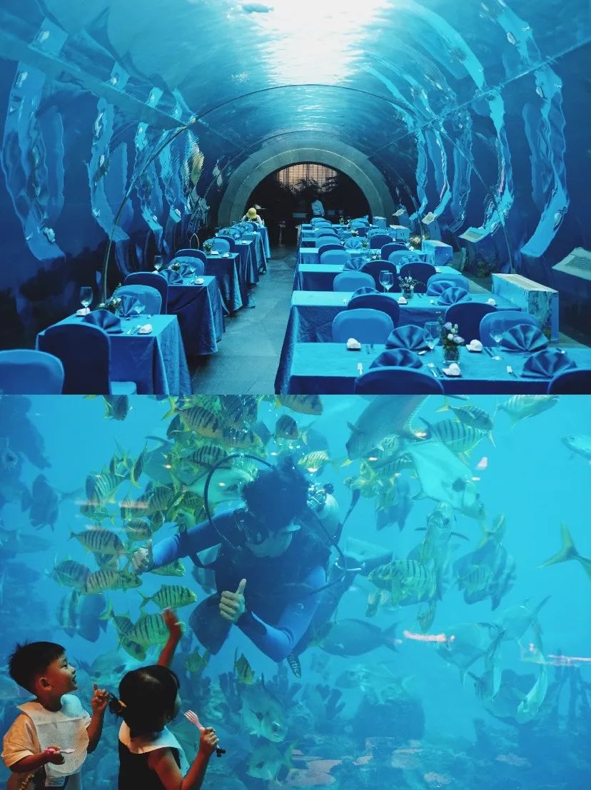 上一秒还在遗憾这趟三亚之旅没玩够的酒店君,下一秒就在天房洲际的水族馆里吃起了大餐,天房洲际的涛-海洋餐厅才是三亚第一家海底餐厅!