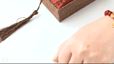 与朱砂的红色相映相衬,珠光闪耀,绝色腕间绕,尽显东方风雅。
