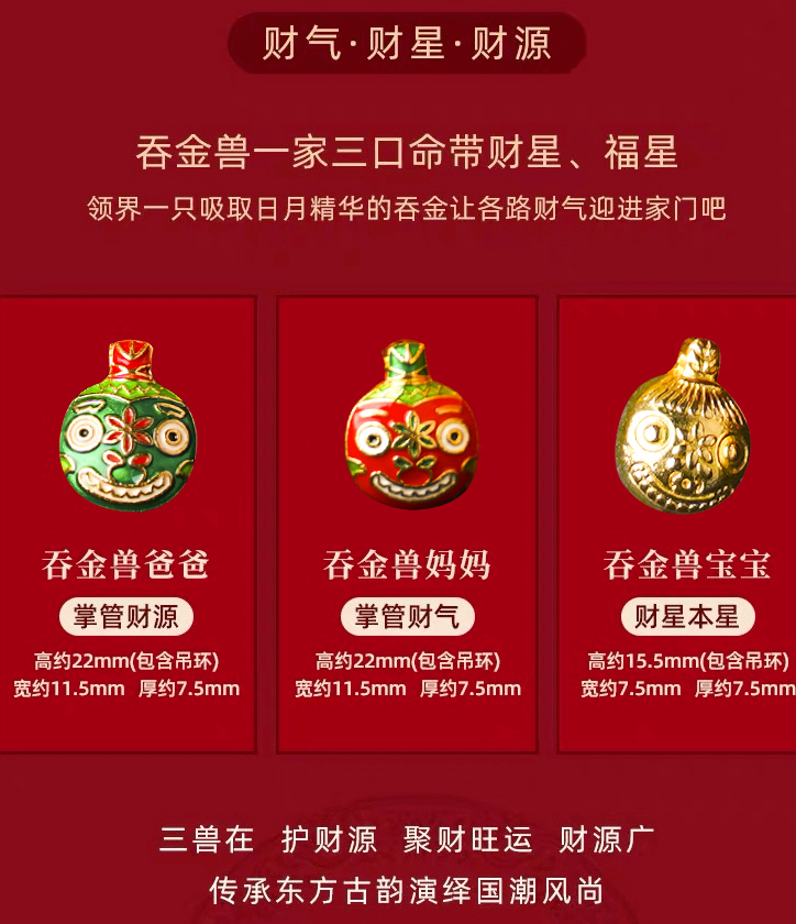 共有三只吞金兽,不同配色对应了不同财气: