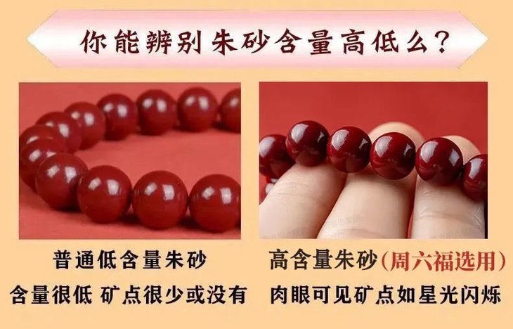 我之前不懂行就买到过低含量朱砂手串: