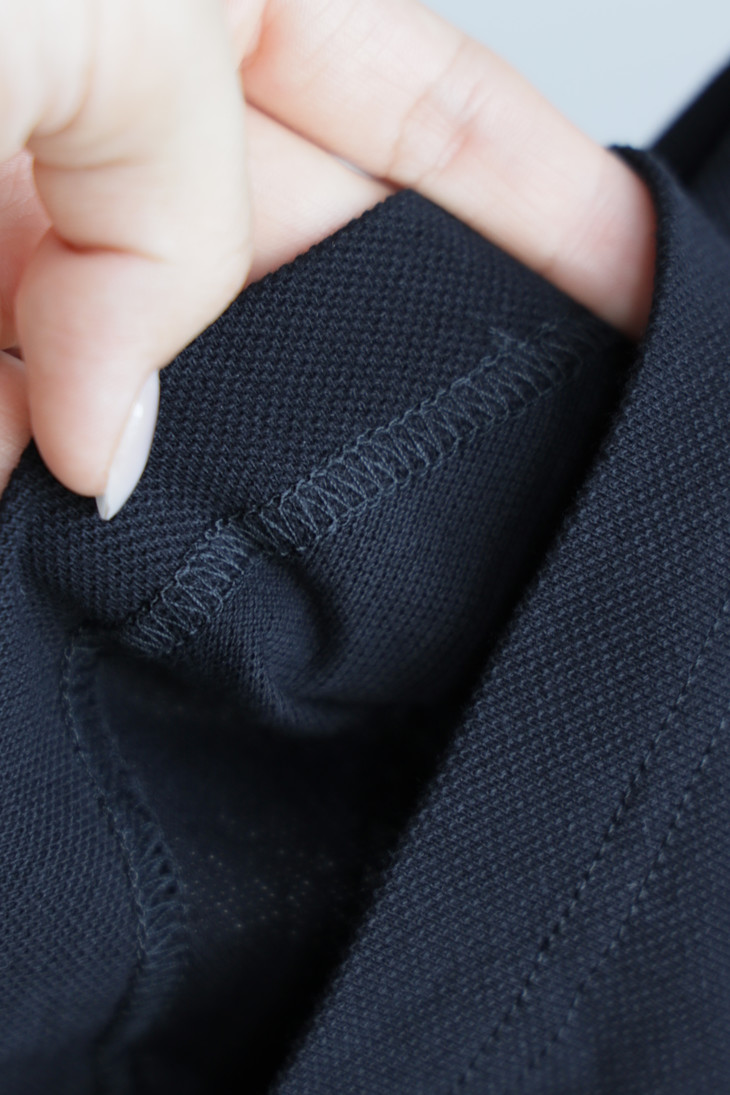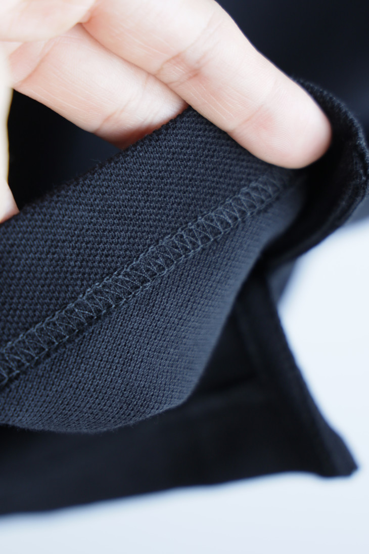 整件T恤立体剪裁,加上四针六线的车工,特别复杂
