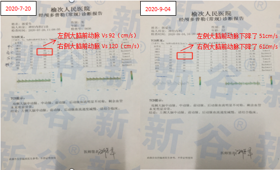2020年9月4日郭先生和他爱人一起到医院复查TCD,结果显示他的脑血流有了明显的改变。