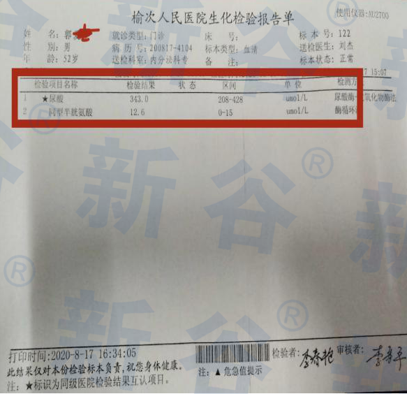 2020年8月15日:测量血压显示偏低(109/60mmHg),见证人乔主任嘱咐其将降压药减量1/2片服用,并且按照四定原则(定时间、定体位、定部位、定设备)一天4次进行血压监测,継续观察血压变化。同时郭师傅的双膝关节疼痛减轻,上肢关节游走性疼痛也在改善,双下肢皮肤瘙痒症状明显减轻,明显感觉睡眠质量变好。